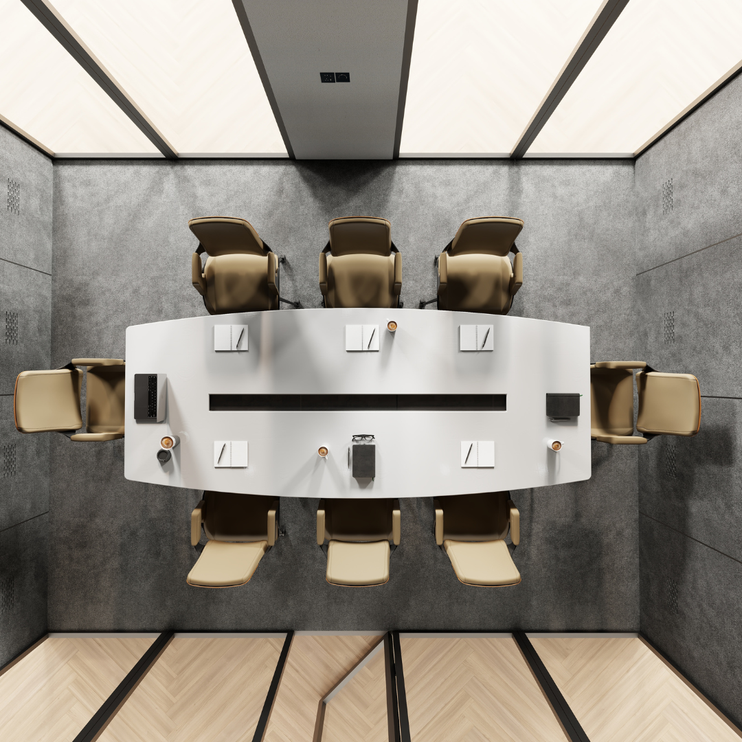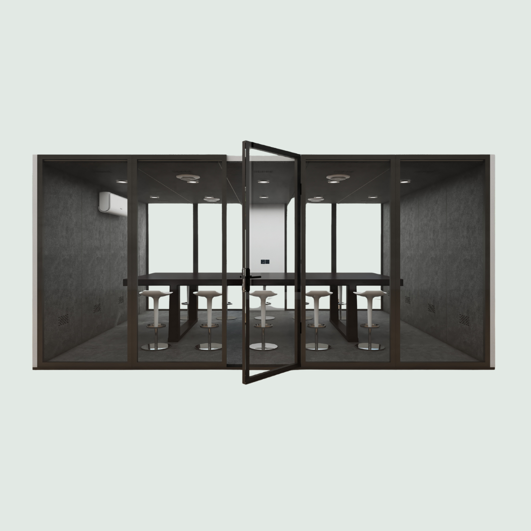 EnterpriseKabin™ is a premium, soundproof meeting cabin designed for executive teams, offering a spacious and acoustically engineered environment for board meetings, training sessions, and confidential discussions. With seating for up to twelve people, it features high-end finishes, a 27″ touchscreen with Bluetooth-enabled AV integration, ergonomic workstations, and adjustable lighting. Built with laser-cut sheet metal and sound-absorbing materials for an acoustic rating of ~28 dB, it ensures clarity and focus during critical conversations. Crafted in the UK using sustainable materials, EnterpriseKabin™ delivers a refined, eco-conscious workspace solution. Shipping fees, taxes, and duties are covered by the customer; secure packaging is provided, and estimated delivery is within 2 days, subject to external conditions.